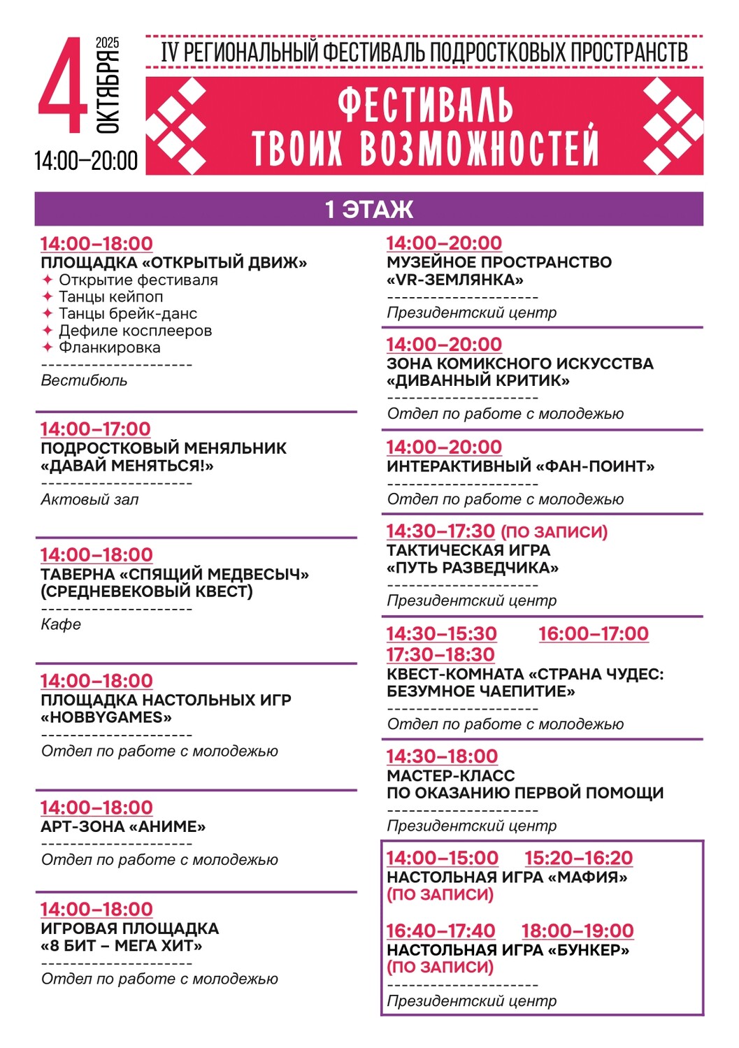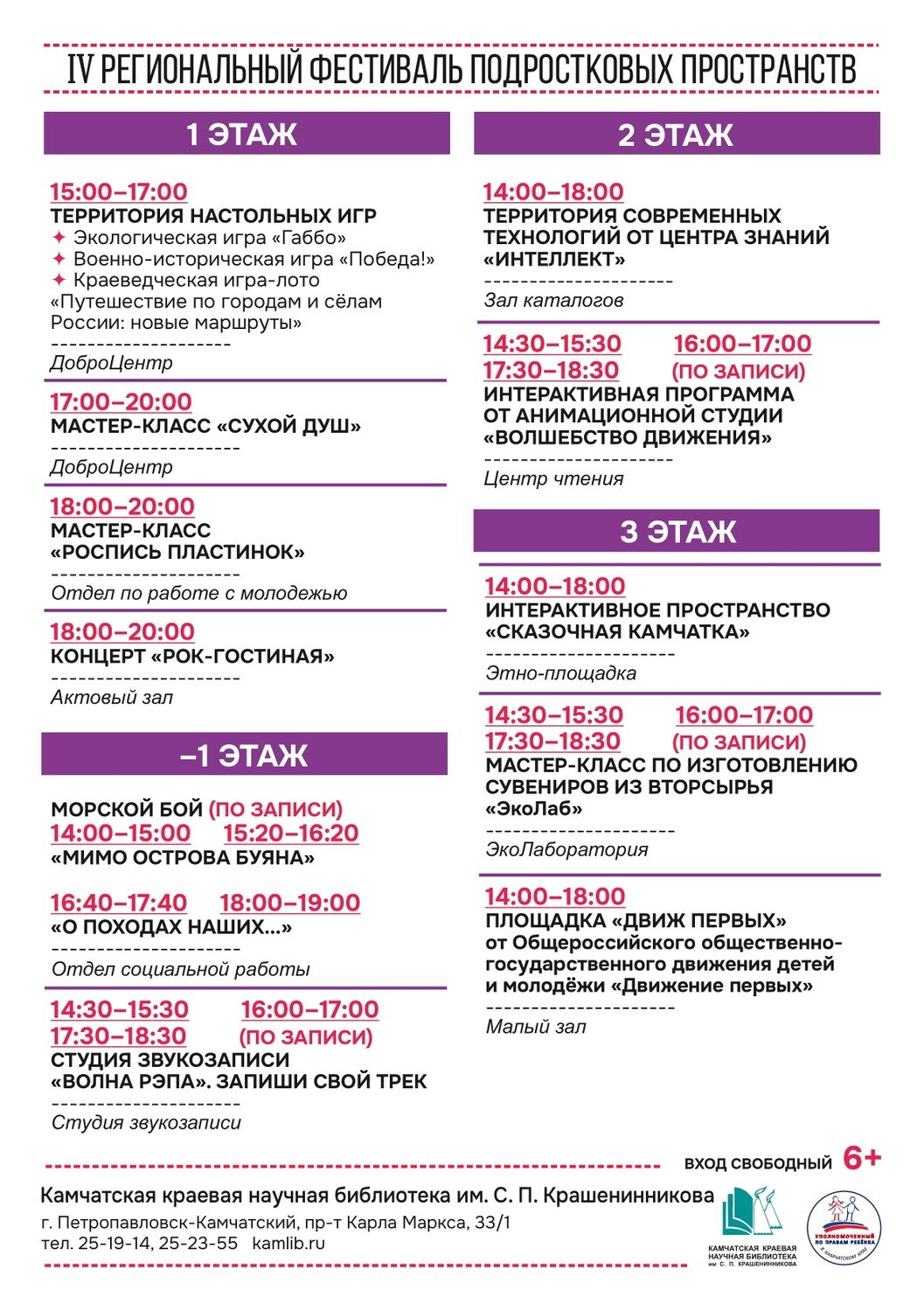 Информируем о проведении IV Регионального фестиваля подростковых пространств «Фестиваль твоих возможностей», который состоится 4 октября 2025 года в 14:00 в Краевой научной библиотеке им. С. П. Крашенинникова. ... Читать дальше »