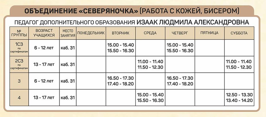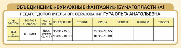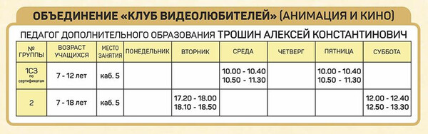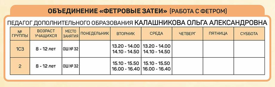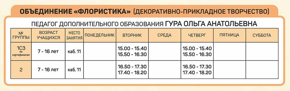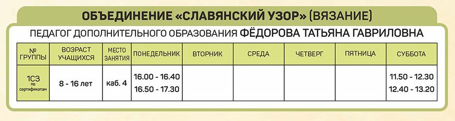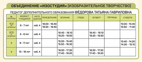 Расписание занятий объединений отдела изобразительного и декоративно-прикладного творчества |