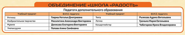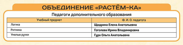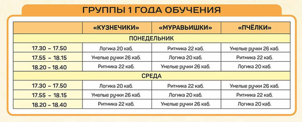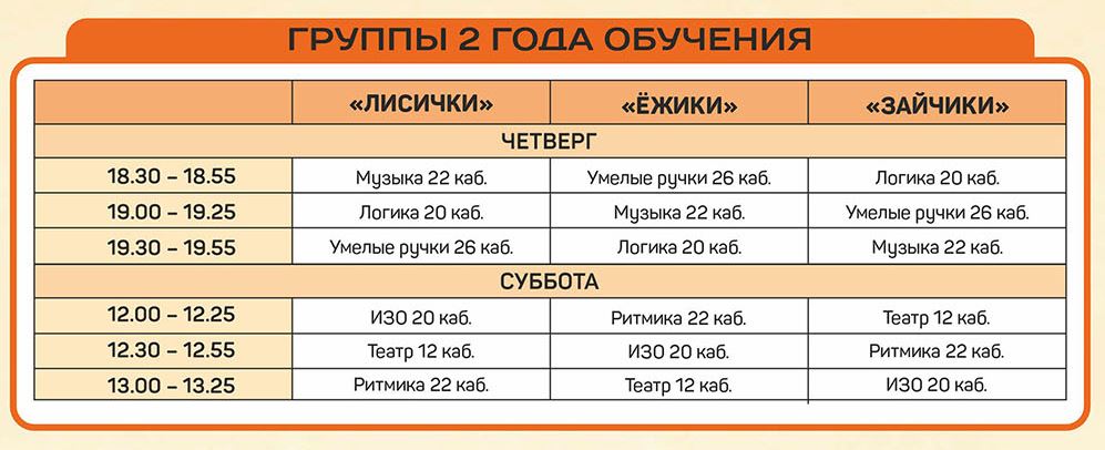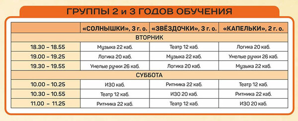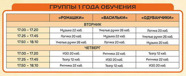 Расписание занятий объединений отдела раннего развития детей |