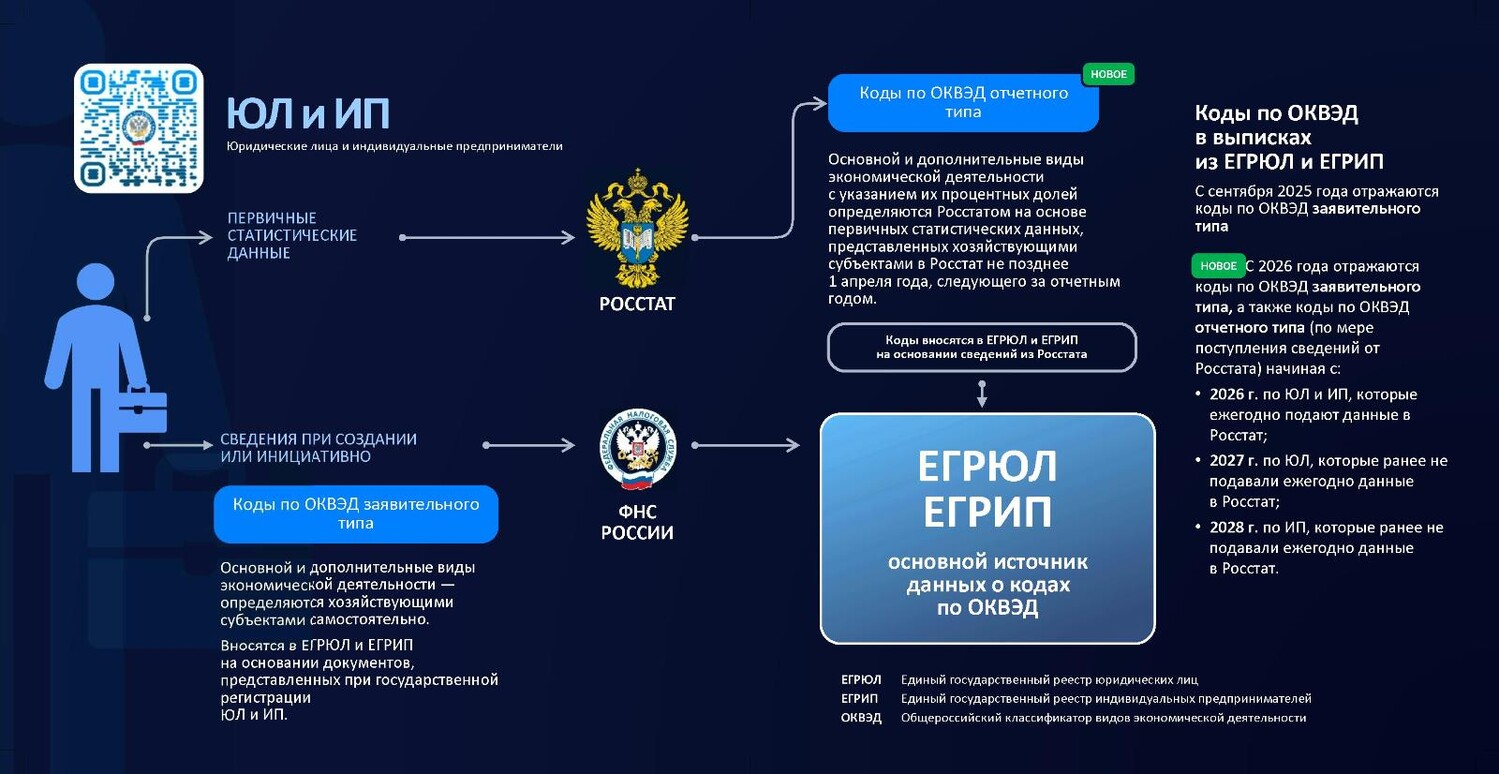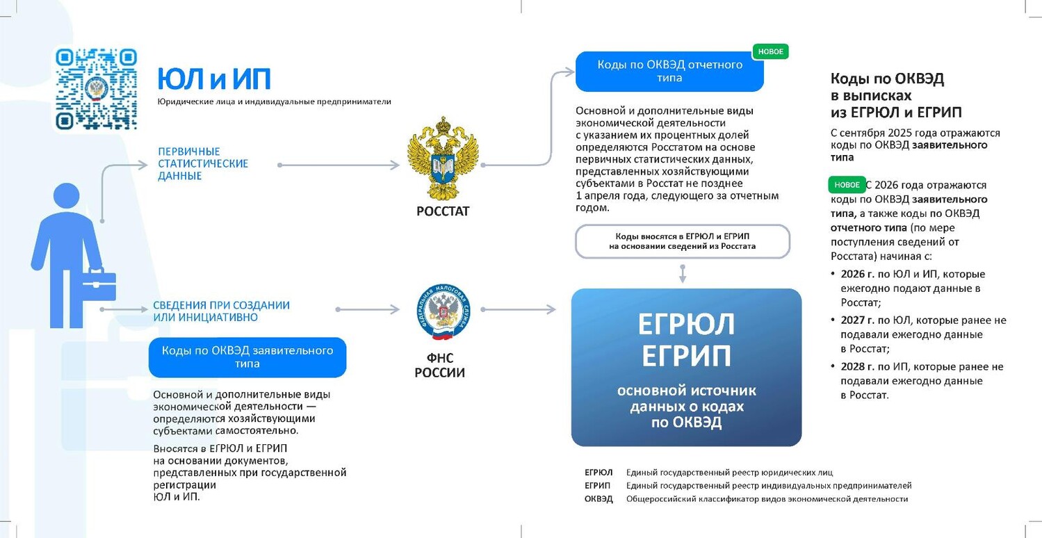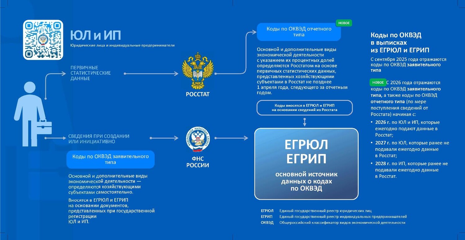 Главная » 2026 Февраль 12 » ФНС России напоминает, как вносятся коды ОКВЭД в реестры ЕГРЮЛ и ЕГРИП