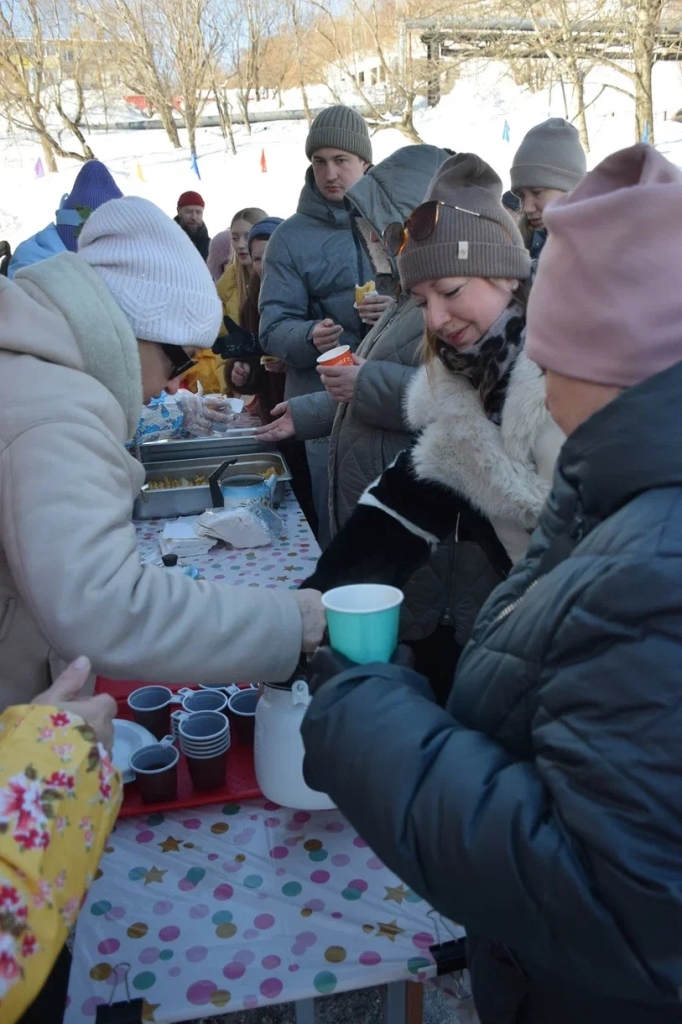 Для тех, кто хотел запечатлеть яркие моменты праздника, была организована красивая фотозона, где каждый мог сделать памятные снимки. А чтобы согреться и подкрепиться, всех угощали горячим чаем с вкуснейшими блинами – главным символом Масленицы.